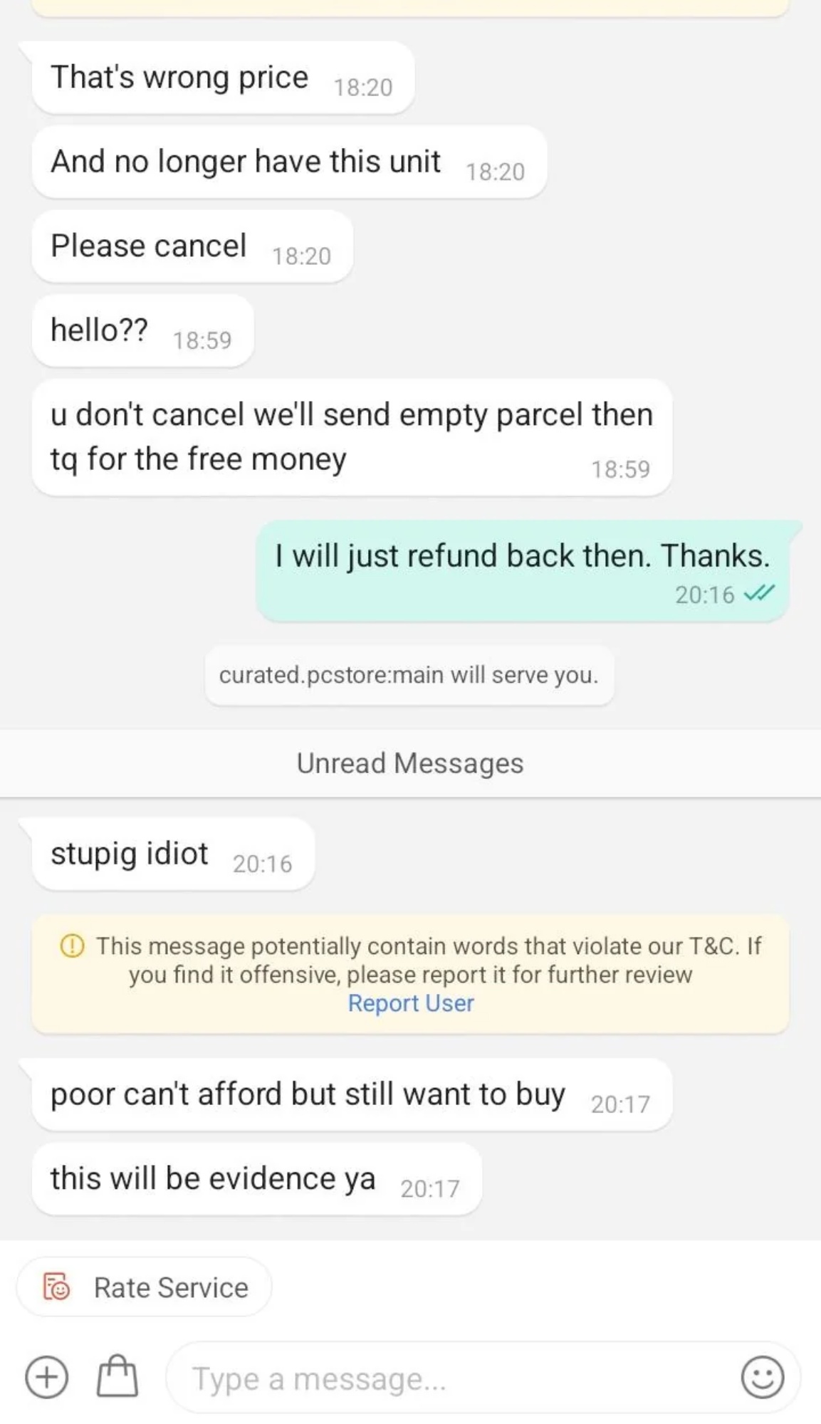 “Poor can’t afford but still want to buy,” the seller allegedly said in the screenshots. “Let me put ur address all over internet,” another message read.